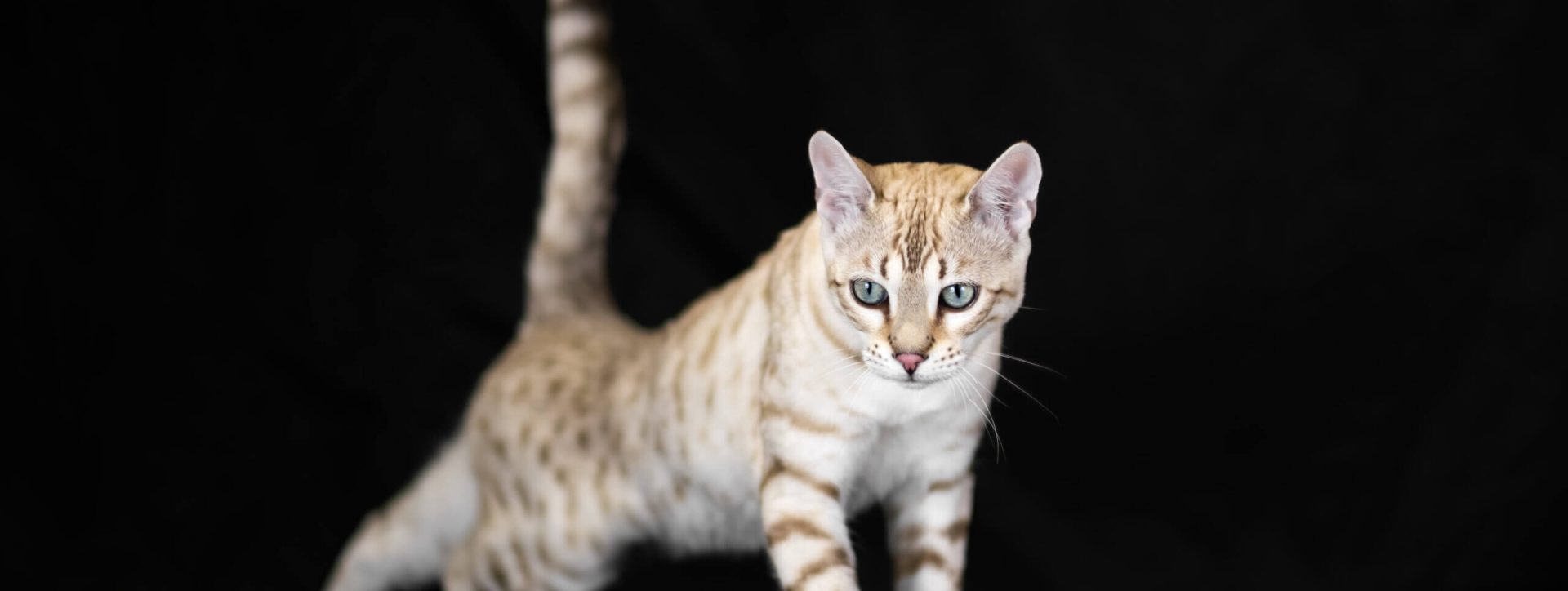 Die Bengalkatze, auch „Leopardette“ genannt, ist eine faszinierende Hauskatzenrasse, die durch ihre auffällige Fellzeichnung besticht, welche sie von ihrem nahen Verwandten geerbt hat. Diese Rasse entstand durch die Kreuzung von Hauskatzen mit der asiatischen Leopardenkatze. Bengalkatzen sind mittelgroß bis groß und haben einen muskulösen Körperbau. Ihr Fell ist kurz, dicht und seidig weich, oft mit markanten Flecken oder Rosetten, die ihnen ein wildes Aussehen verleihen.